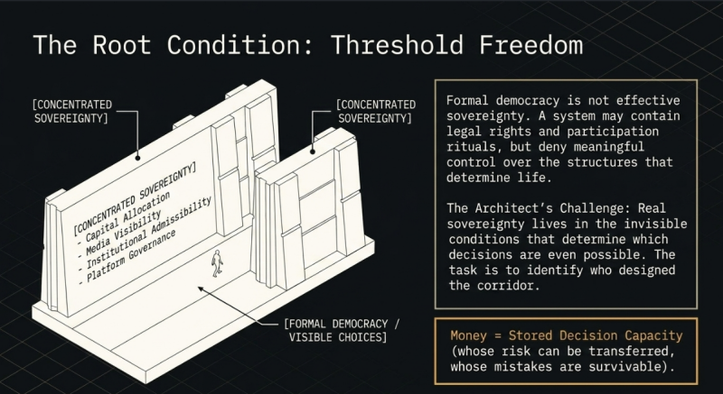 We are engineering the invisible conditions and power thresholds that determine which decisions are even possible.